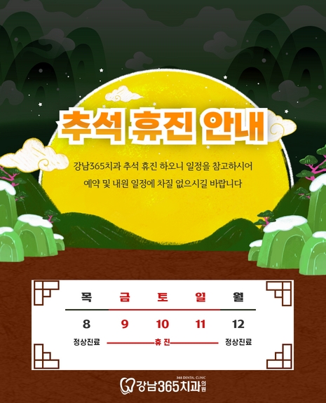 공지사항 강남365치과 추석 연휴 진료 안내 페이지 정보 작성자 강남365송도글로벌점 작성일22-09-01 09:44 조회1,334회 댓글0건 관련링크 이전글 다음글 목록 본문 이전글 다음글 목록